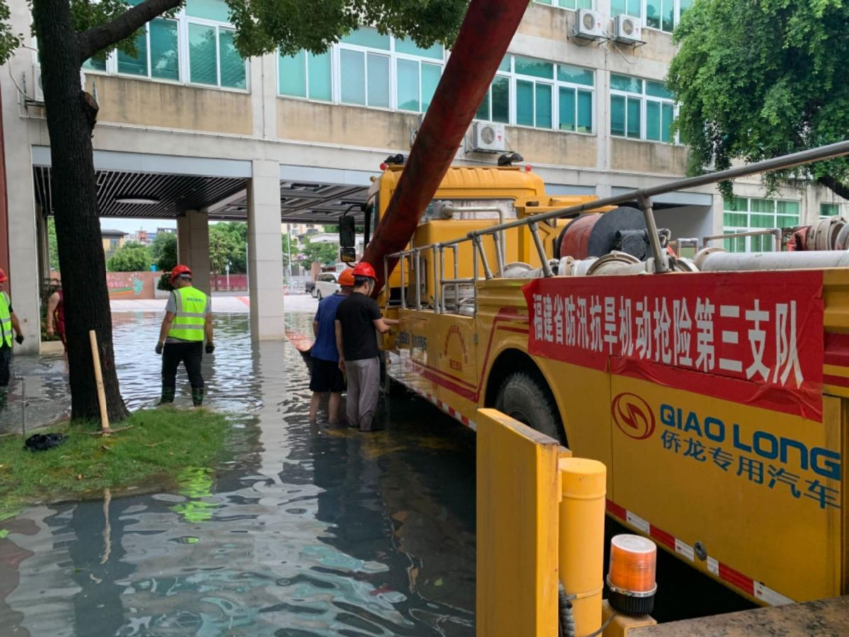 2024年6月16日,南平市光泽县遭遇强降雨天气,部分路段出现严重积水。17日凌晨4点,接到省应急厅紧急调令,第三支队立即成立突击队,抽调18名精兵强将,安排2台“龙吸水”排水车火速驰援光泽县,并投入到光泽二中周边路段负责紧急排涝。由于3天后就是中考,此次应急排涝关系到光泽二中考点周边道路能否畅通,考生家长出行是否安全,时间紧,责任重。