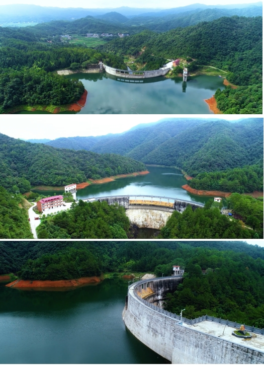 长汀县陂下水库位于长汀四都镇同仁村,水库坝址以上集雨面积166km2,总库容5801万m3,是一座兼有灌溉、发电、防洪作用的中型水库。陂下水库大坝为砌石双曲拱坝,坝高52.3m,坝长195m,工程于1978年2月动工,1986年7月建成。水库主要承担下游四都镇、濯田镇5.7万亩耕地灌溉和坝后陂下电站的发电用水任务,同时水库养殖水面有3000多亩,是濯田河流域梯级开发的龙头水库。