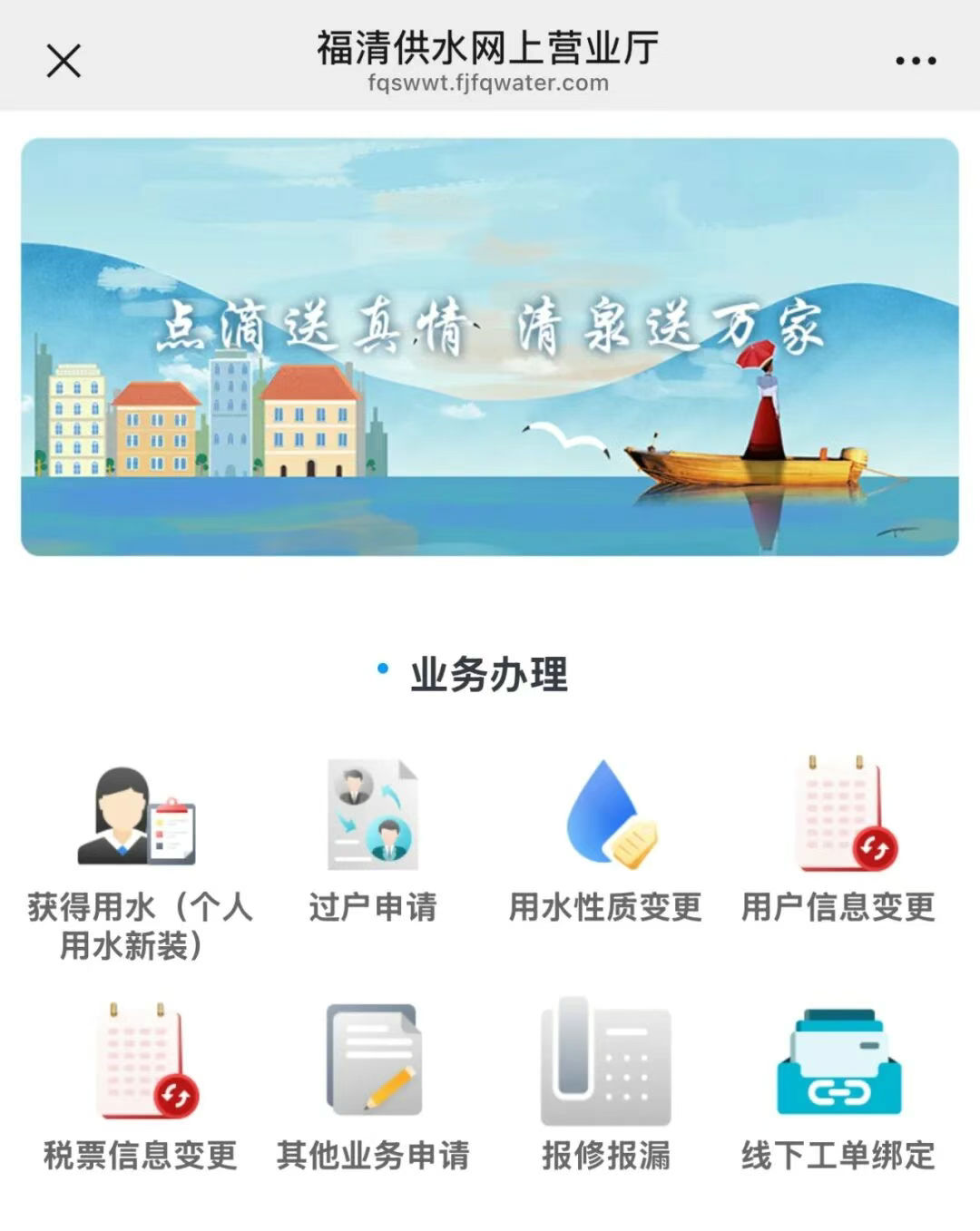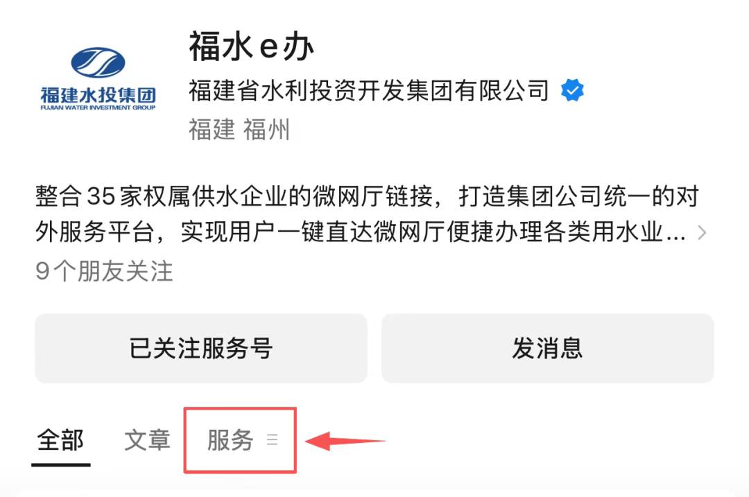第一步:关注“福水e办”服务号;