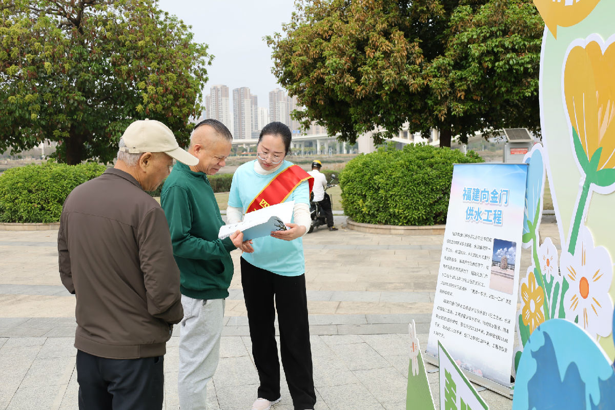 活动采用线上线下联动方式,线上推出节水知识问答小程序与全程图片直播,线下组织节水徒步打卡、主题签名等活动。徒步路线沿途设置宣传展板,集中展示向金门供水工程成效与水源保护实践,志愿者现场讲述工程节水护水经验和两岸通水背后的动人故事,让“两岸一家亲,共饮一江水”的深情厚谊触手可及。