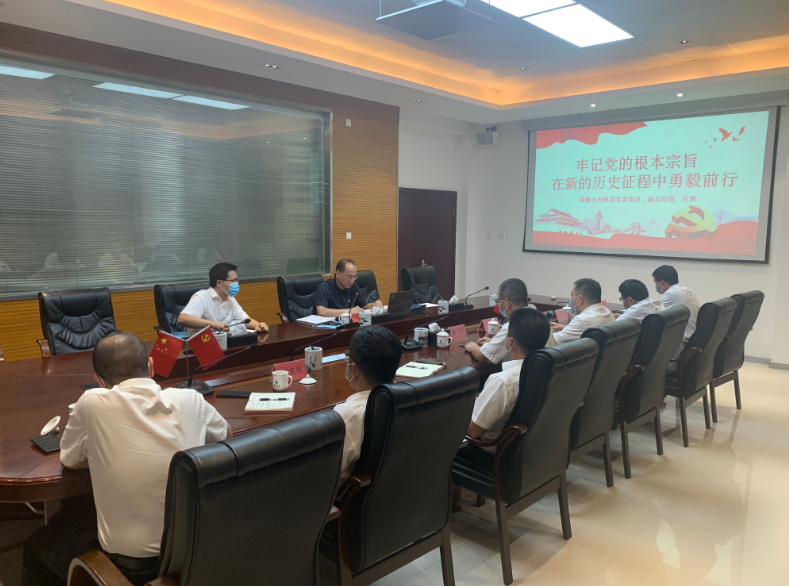 在中国共产党成立101周年之际,7月1日下午,雷竞技党委委员、副总经理叶辉到中闽水务权属企业福清水务公司,以“牢记党的根本宗旨,在新的历史征程中勇毅前行”为主题,为福清水务公司第一党支部上了一堂生动的党课。