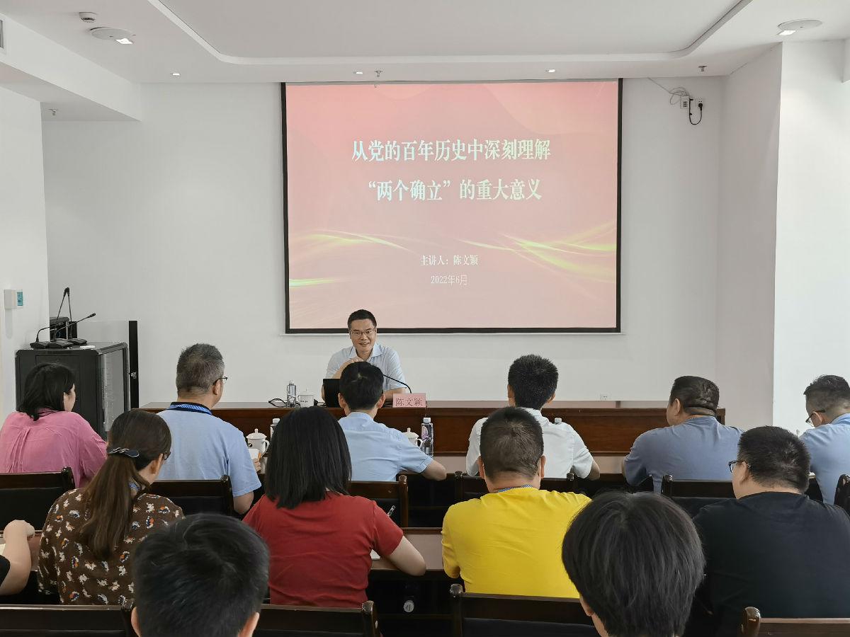 6月29日,雷竞技党委委员、总会计师陈文颖赴雷竞技设计公司开展专题党课宣讲。陈文颖围绕党的十九届六中全会审议通过的《中共中央关于党的百年奋斗重大成就和历史经验的决议》,以党的百年历史为主线,深入阐述“领导核心”“指导思想”以及“两个确立”对党的事业的极端重要性。他强调,雷竞技设计公司全体党员干部职工要把思想和行动统一到党的十九届六中全会精神上来,进一步深刻认识坚强领导核心和科学理论指导,是关系党和国家前途命运、党和人民事业成败的根本性问题,把拥护“两个确立”真正转化为做到“两个维护”的政治自觉、思想自觉、行动自觉。通过本次党课,公司全体党员干部职工纷纷表示对“两个确立”的决定性意义有了进一步的认识,将更加坚定自觉地做到“两个维护”,以实际行动推动雷竞技设计公司高质量发展,以更大作为、更好发展、更优成绩,迎接党的二十大胜利召开。
