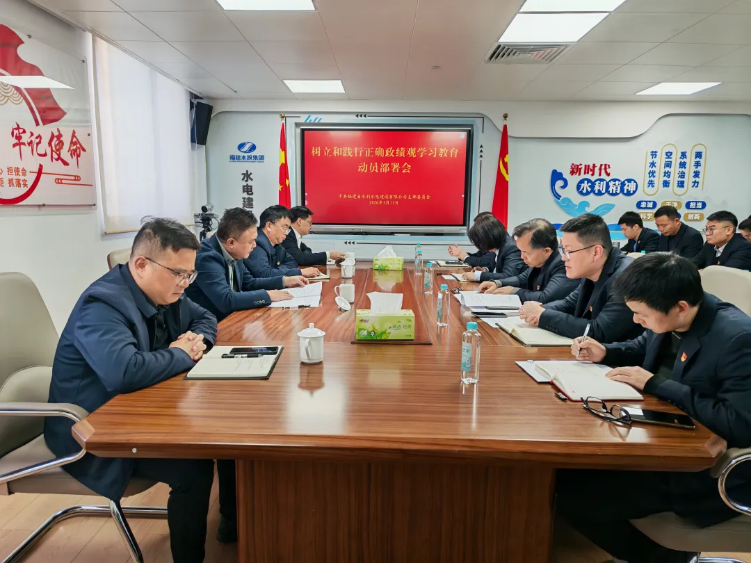 闽水管理公司组织党员、干部召开树立和践行正确政绩观学习教育部署会议,全面部署学习教育工作。会议强调,党员、干部要提高政治站位,深刻把握正确政绩观的实践要求,切实把学习教育成果转化为推动公司高质量发展的实干实效。一要以学铸魂,坚持原原本本学、联系实际思,真正把正确政绩观内化于心、外化于行。二要以查促改,坚持刀刃向内、深查细照,既找工作层面的“偏差”,更挖思想深处的“根子”,在对标检视中正本清源。三要以干践行,坚持把正确政绩观融入企业改革发展、经营提效中,担当作为、务求实效,全力推动公司在“十五五”开局之年起好步、开好局。