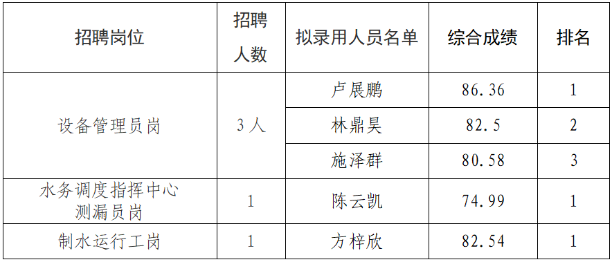 根据雷竞技平潭水务有限公司招聘公告,经过报名、资格审查、笔试、面试等公开招聘程序,现将拟录用人员进行公示。公示时间从2026年4月2日开始,公示期为七个自然日。在此期间内,如有意见可通过来电、来信、来访的形式反映情况。